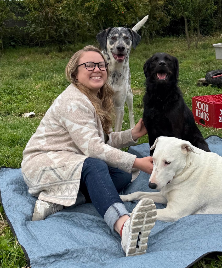 Estoy enamorada de estos tres perros. Todos TAN diferentes, TAN graciosos y TAN amorosos. Es verdad que me compliqué un poco la vida, porque tres perros es muchísimo trabajo. No siempre es todo tan romántico: también es cansado y los gastos son altos. Cubrir sus necesidades, tan distintas entre ellos, me lleva todo mi tiempo libre. Pero también es verdad que amo hacerlo. Y aunque a veces quisiera tirarme en el sofá a ver una serie, agradezco tener a tres que me activan.